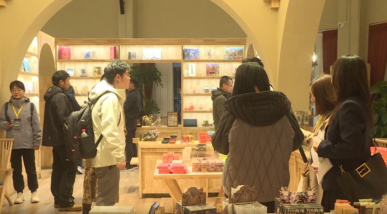 在敦煌印局,嘉宾们参观了具有敦煌特色的文创产品,还品尝了“敦煌1900”咖啡,感受敦煌文化在当代生活中的创新表达。在敦煌无界,嘉宾们通过沉浸式展览和互动体验,开启与千年敦煌的跨时空对话。