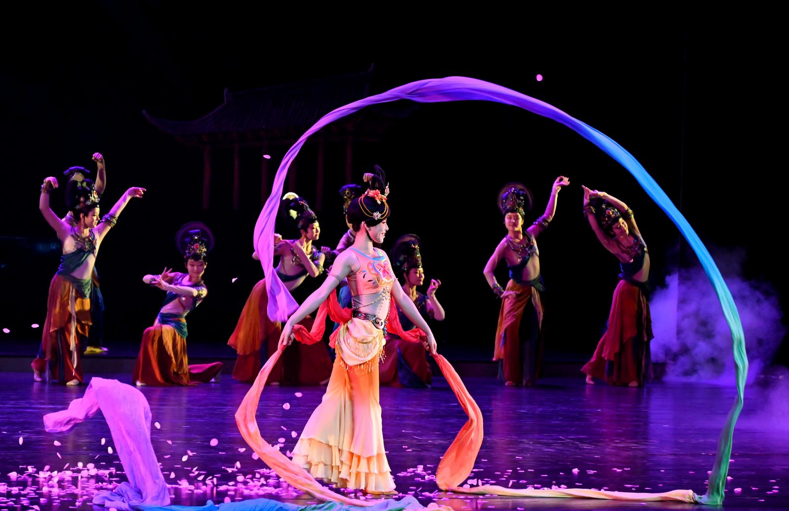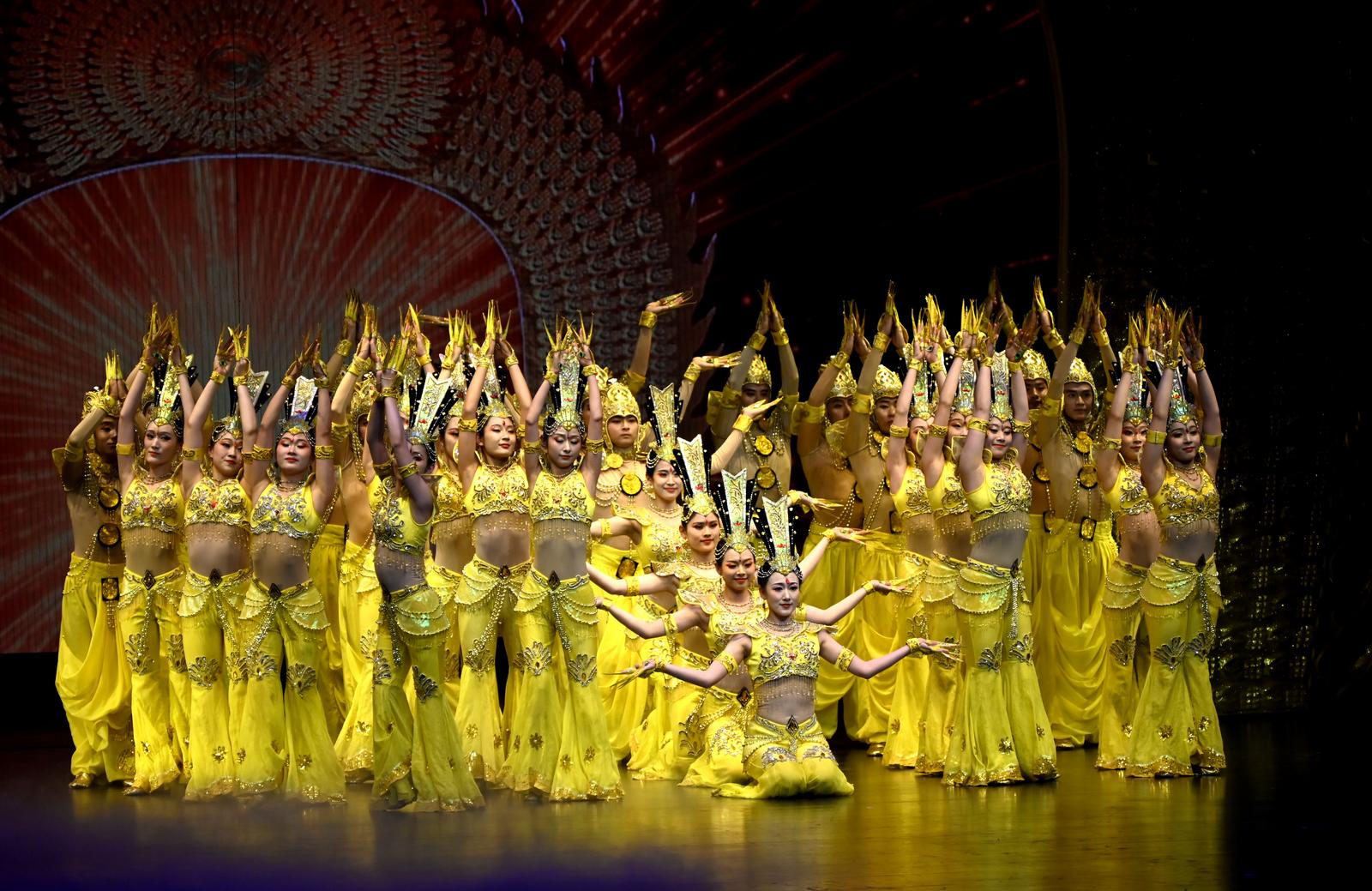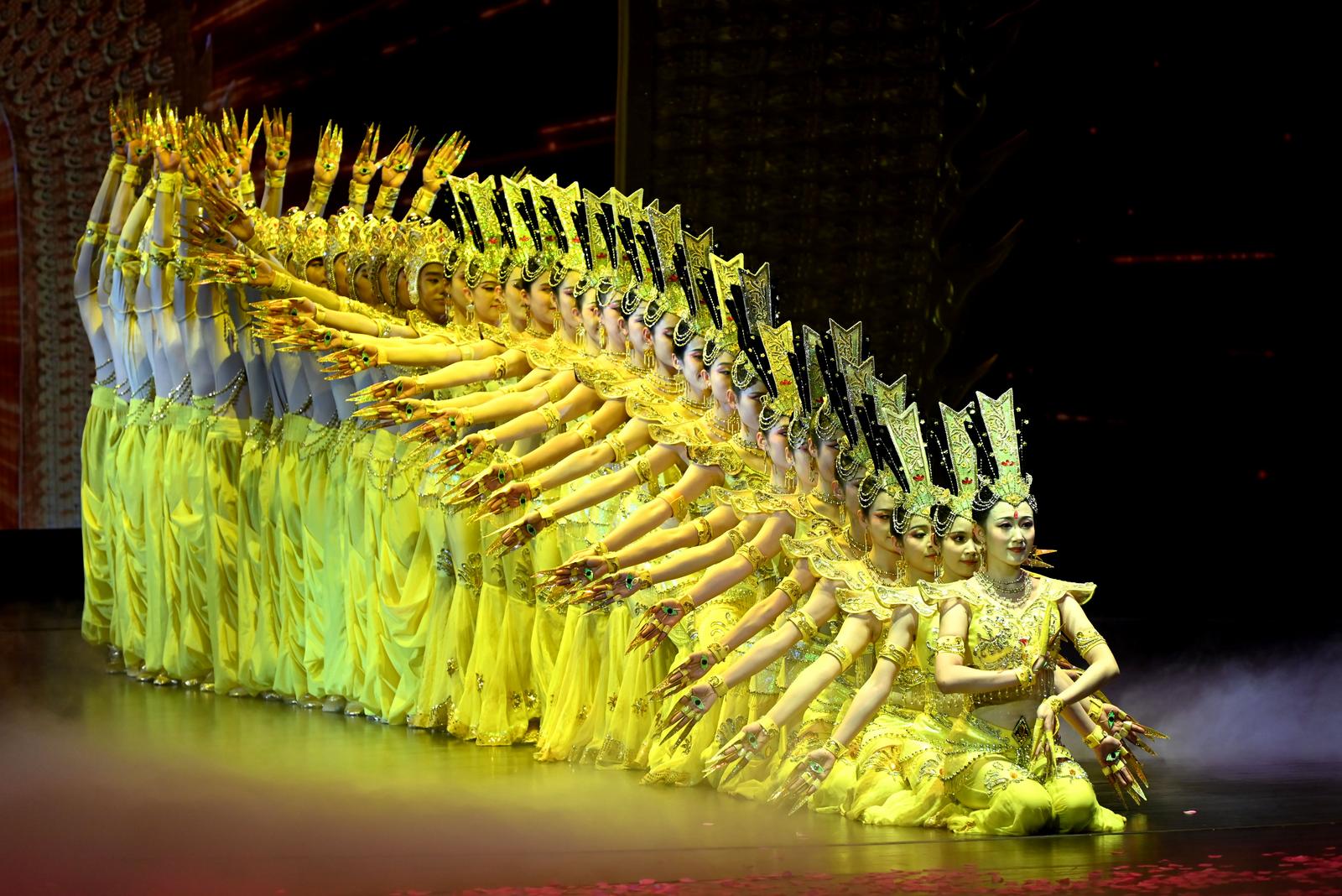 2025年6月8日,中国残疾人艺术团演员在敦煌大剧院表演大型情景音画剧《千手千眼》。