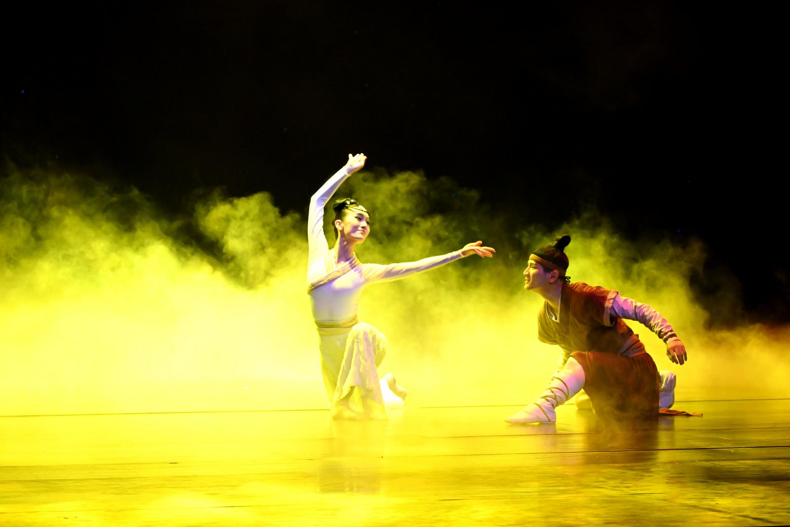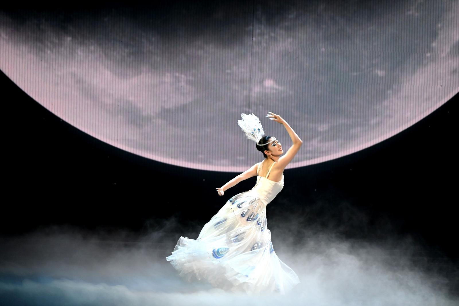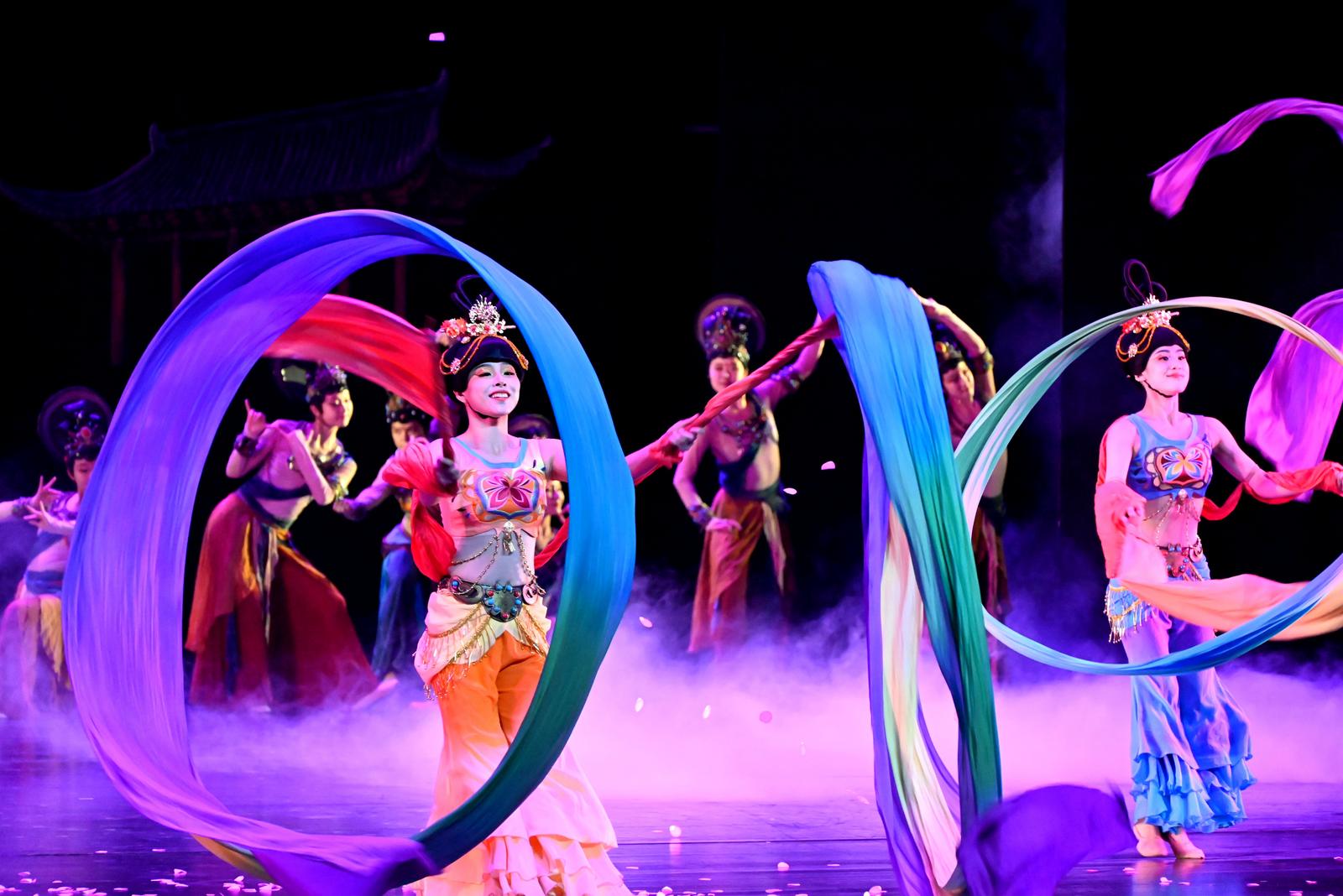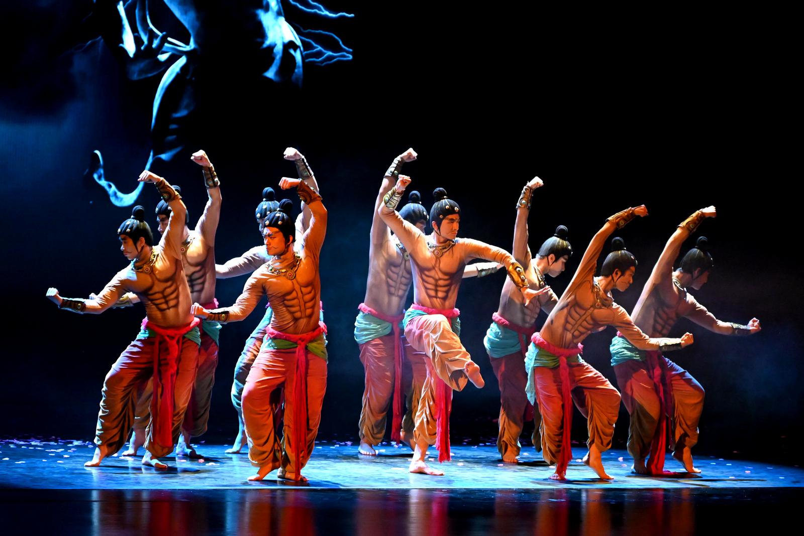 2025年6月8日,中国残疾人艺术团演员在敦煌大剧院表演大型情景音画剧《千手千眼》。