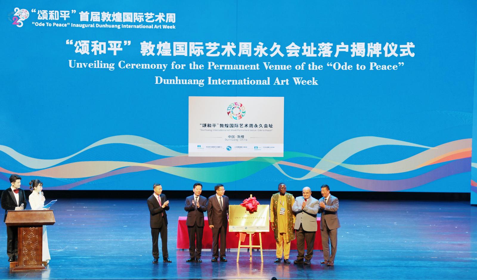 敦煌市委副书记、市长朱建军主持活动,并和参会嘉宾为“颂和平”敦煌国际艺术周永久会址落户揭牌。共青团甘肃省委副书记谢冬瑾及青少年代表共同启动“携手添绿意 同心颂和平——绿满陇原·共绘国际生态卷主题活动”。