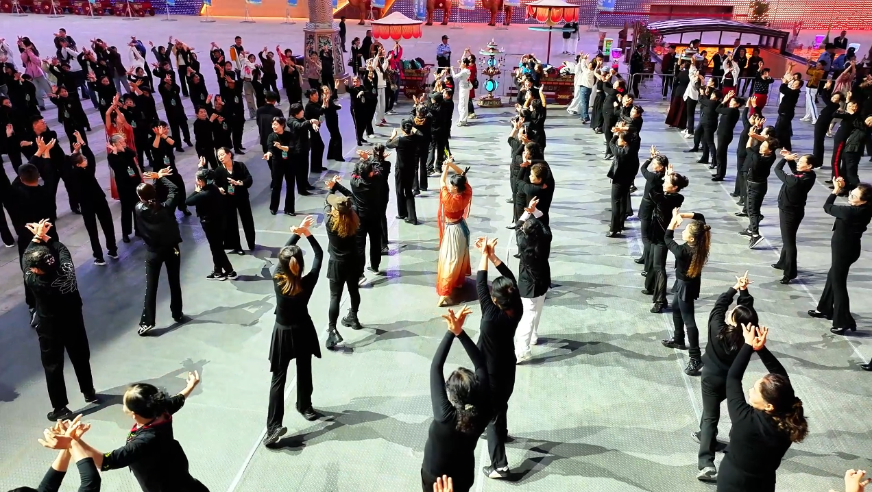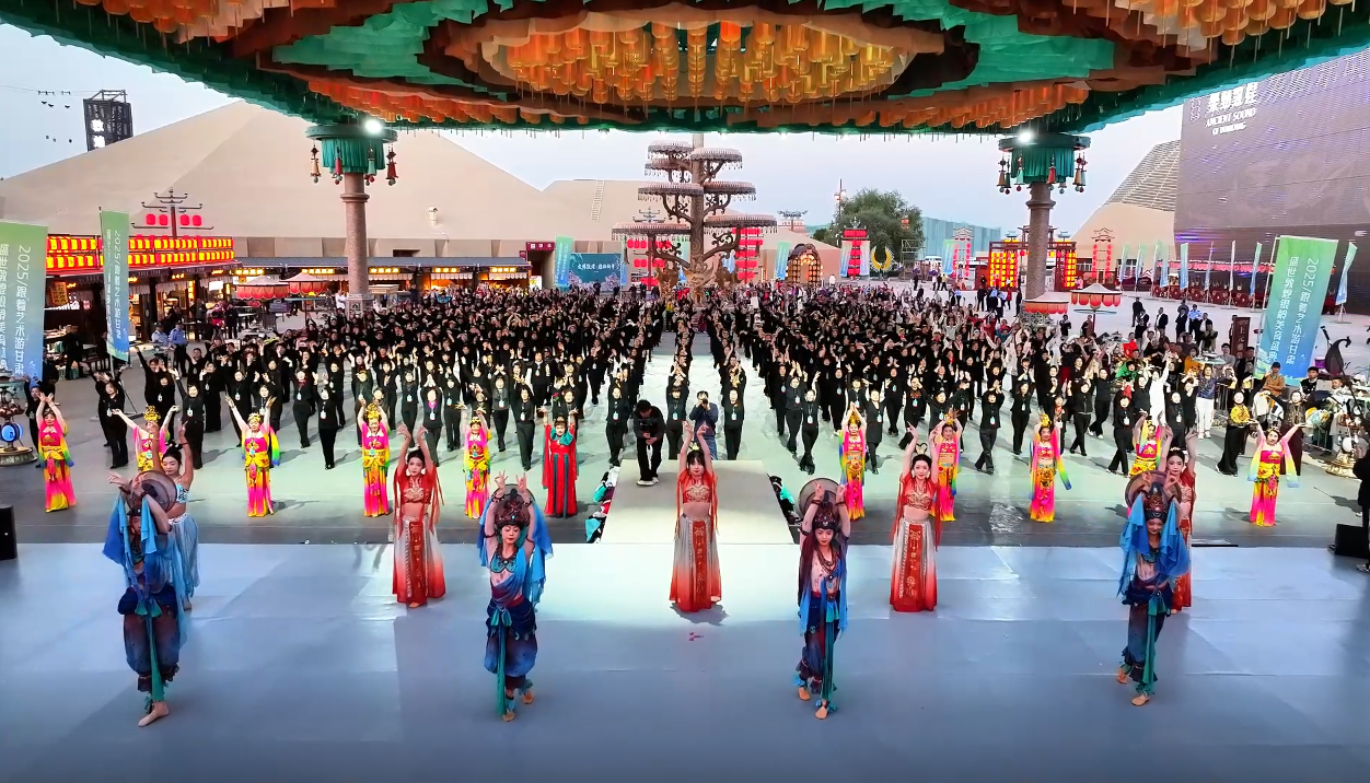 9月26日晚,“跟着艺术游甘肃——盛世敦煌银龄美育盛典”系列分项活动——“乐动敦煌·乐舞和鸣”共跳敦煌诗乐舞大世界基尼斯挑战,在乐动敦煌上元市集举行。540名银龄舞者以翩跹舞姿重现壁画神韵,成功创下“参与人数最多的敦煌主题诗乐舞展演活动”大世界基尼斯之最,用艺术之姿书写丝路文化传承的崭新篇章。