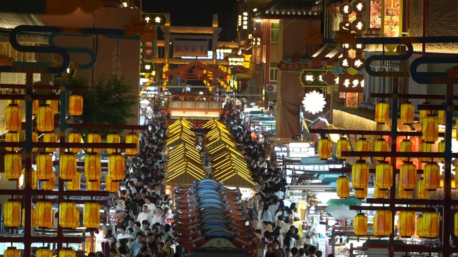 国庆假期:敦煌夜市游人如织 烟火气中尽显丝路风情